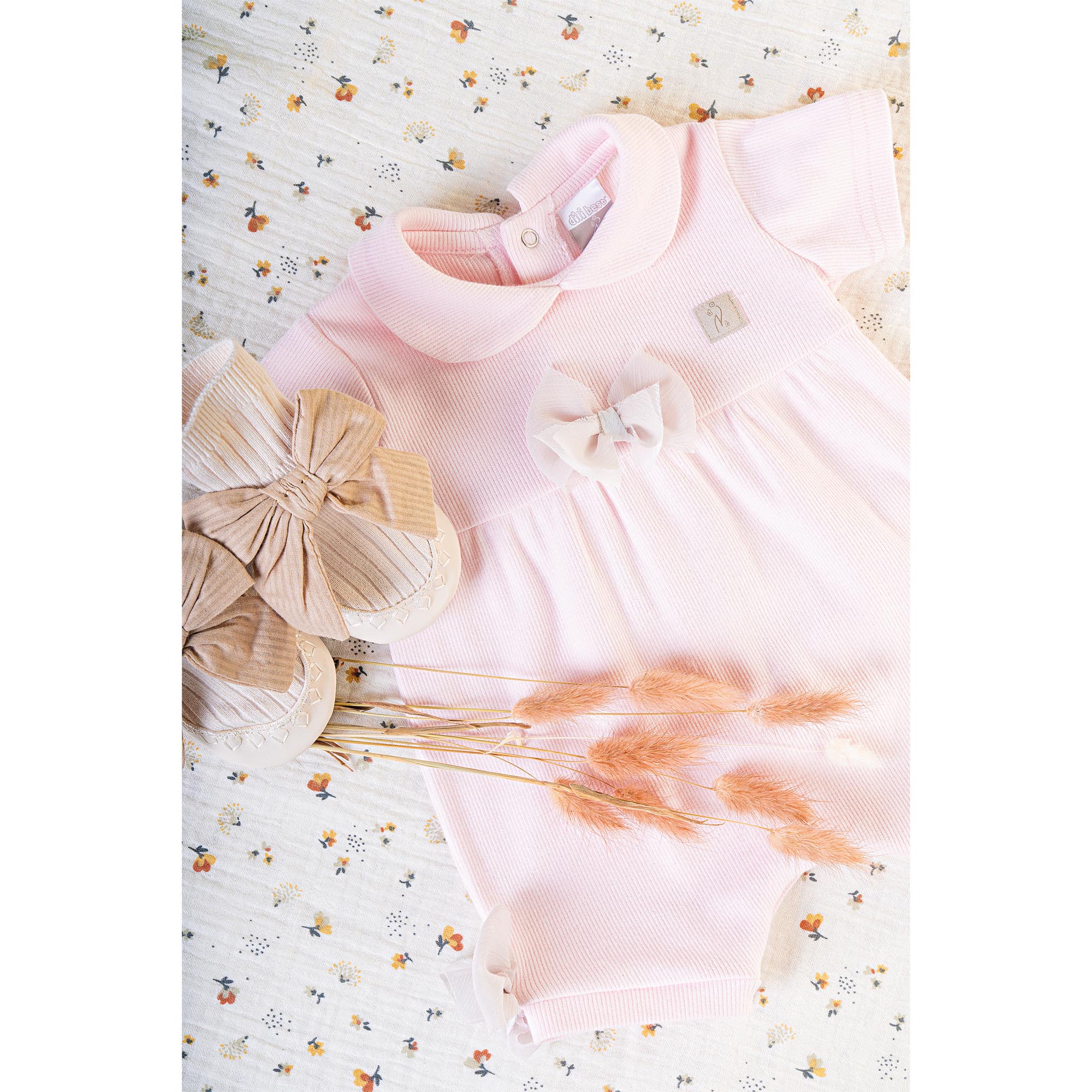 Kurzer Overall mit Voile-Schleife aus gestreifter Bio-Baumwolle