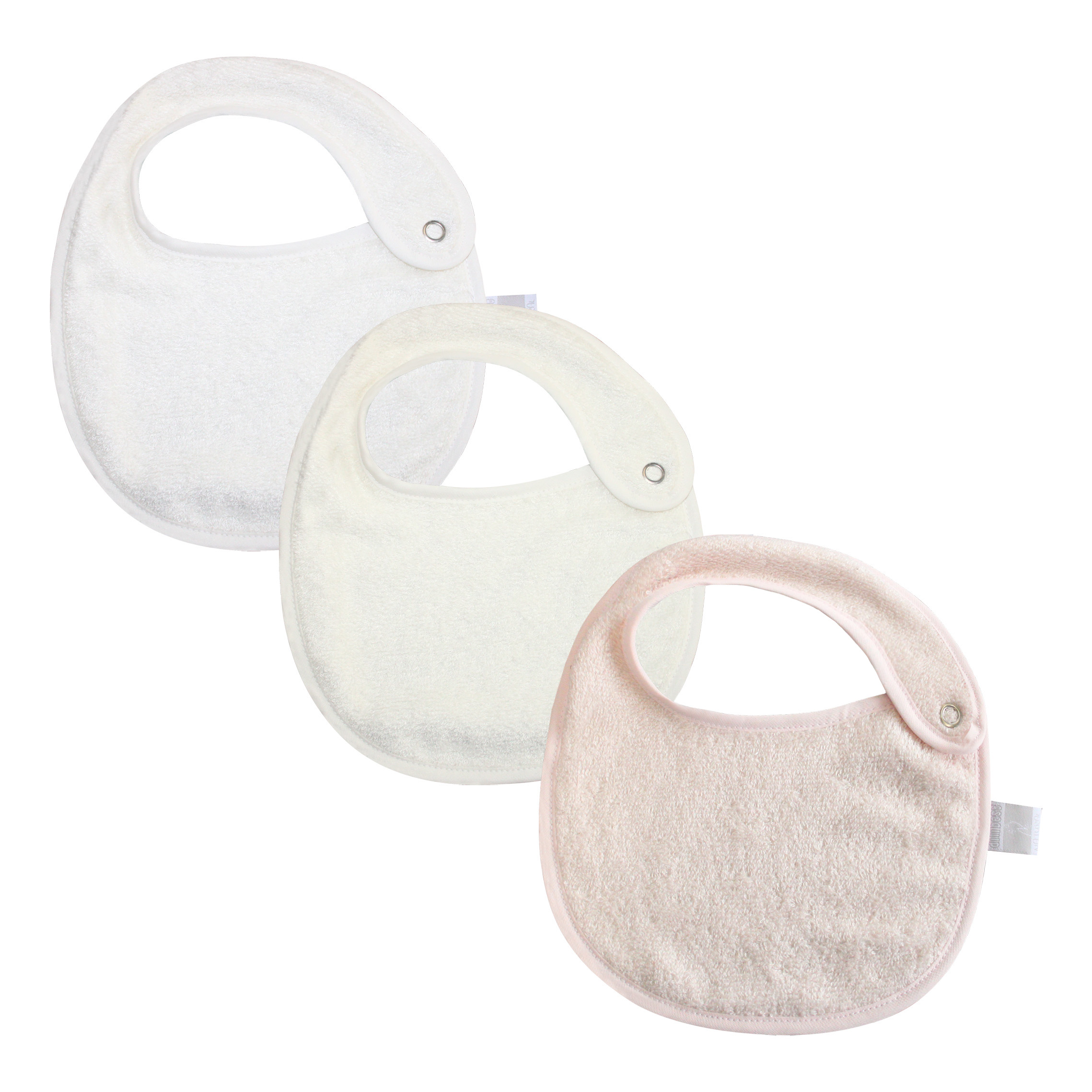 3-teiliges Lätzchen-Set aus einfarbigem Bambusschwamm – Weiß, Cremeweiß, Rosa