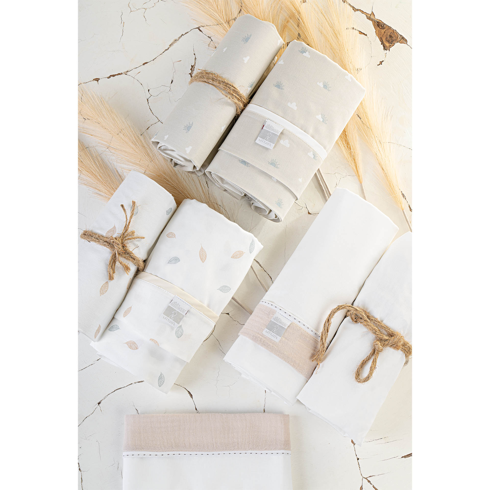 Das NATURAL Wiegen-Set besteht aus: Laken + passendem Kissenbezug. Beim Ausruhen ist es wichtig, dass das Kind von atmungsaktiven, natürlichen und hypoallergenen Materialien umgeben ist. Eine Farbpalette, die speziell entwickelt wurde, um dem Schlafzimmer eine entspannende und zarte, aber gleichzeitig modische Atmosphäre zu verleihen.