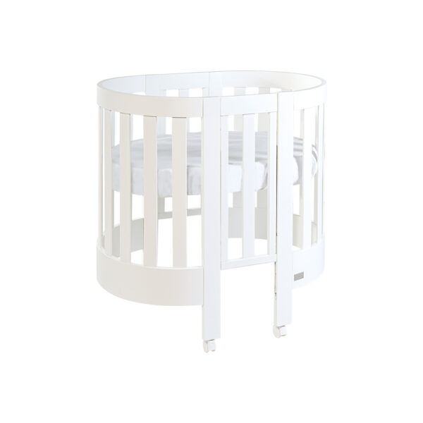 Dank des Umbausatzes inklusive Matratze lässt sich das ovale Bett RONDÒ (separat erhältlich) in ein kleines cradle verwandeln, das sich ideal für die ersten Monate des Babys eignet.