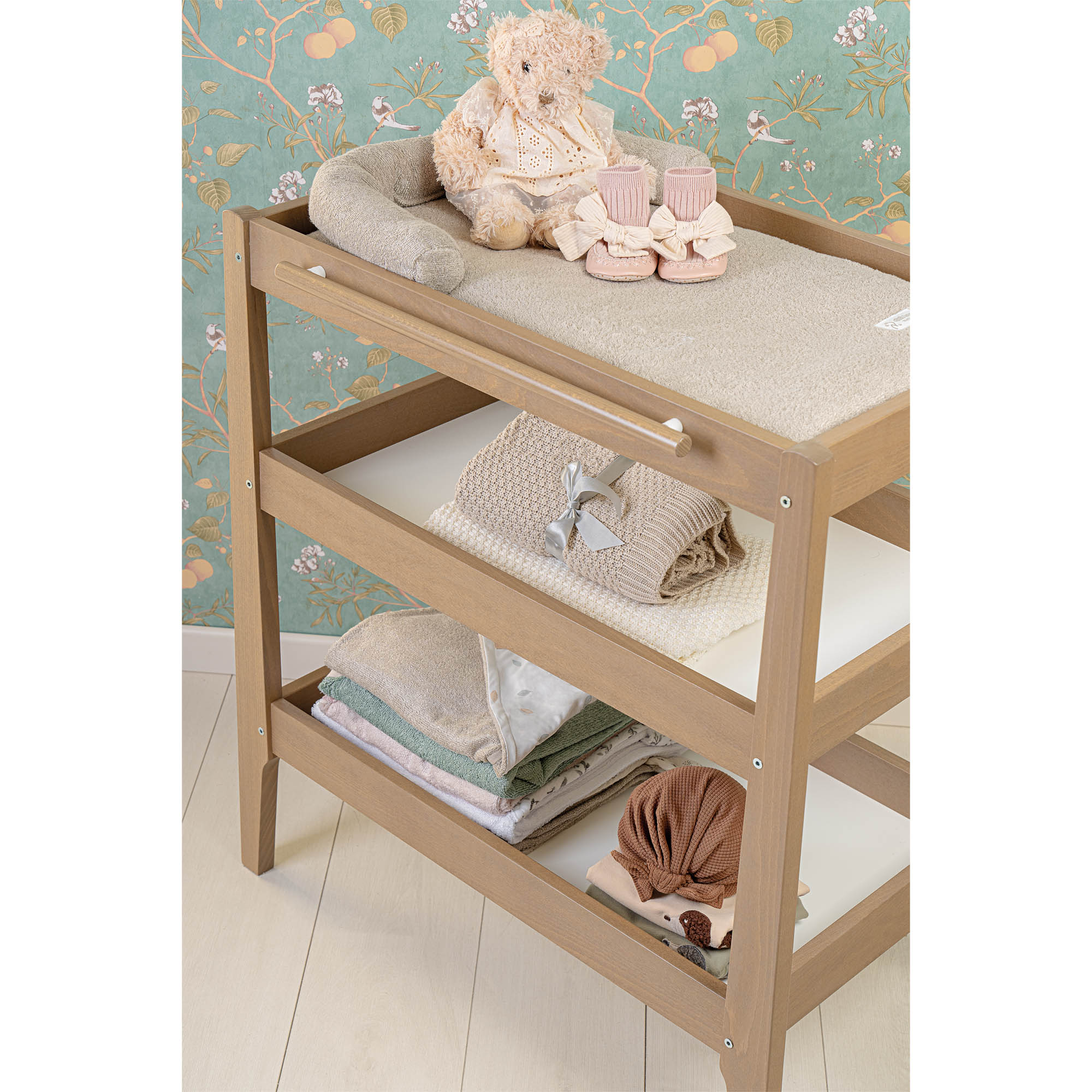 | Eigenschaften | Wickeltisch mit Handtuchgriff und Wickeltischplatte aus Bambusschwamm |