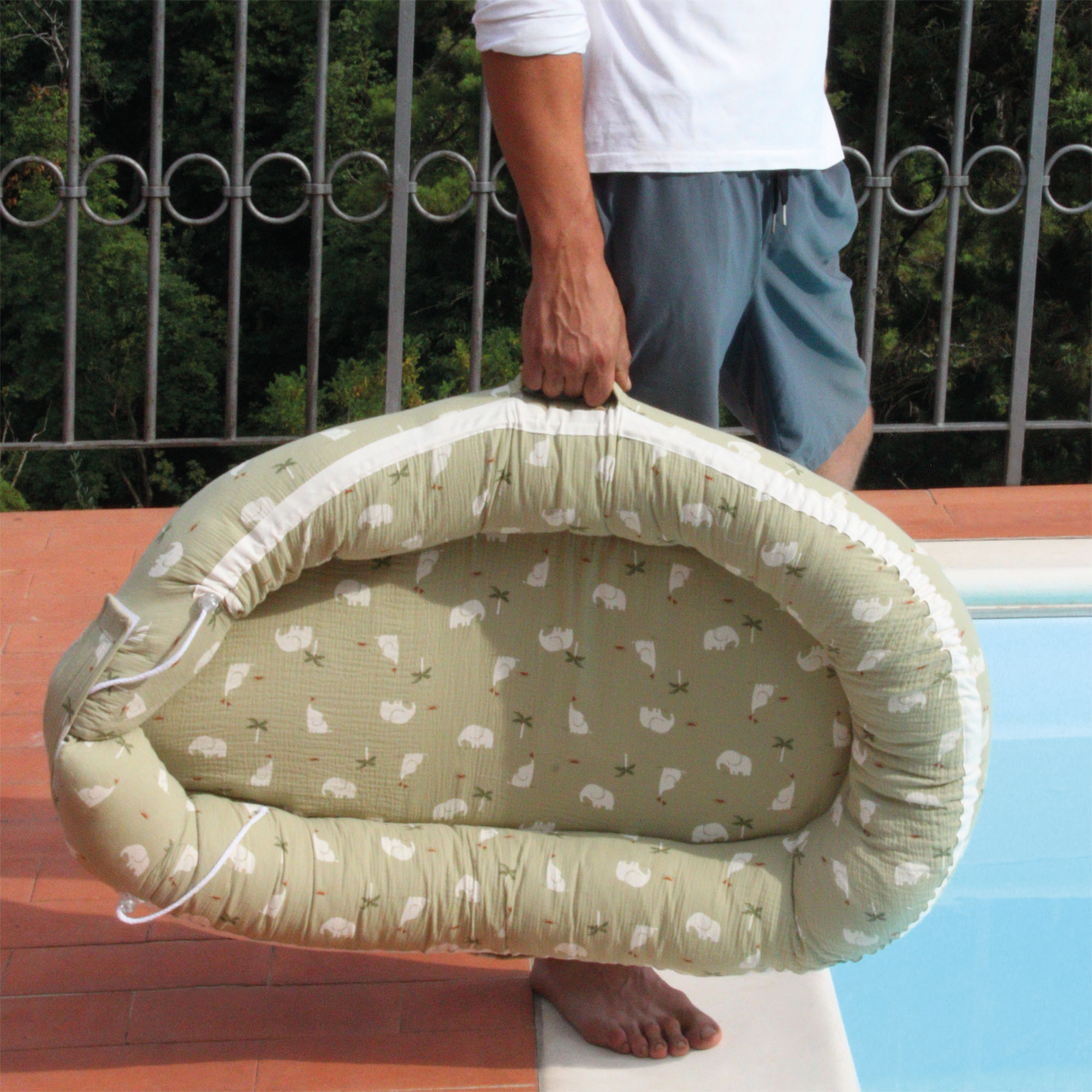 Nannadì è il riduttore che avvolge il bambino mentre dorme e lo fa sentire protetto e al sicuro come nella pancia della mamma. Pensato per il neonato dalla nascita fino ai primi 8 mesi di vita. È multifunzione; utilizzato come riduttore all’interno del letto per far sentire il bambino protetto, posizionato sul tappeto o sul divano per rilassarsi e allo stesso tempo avere il vostro piccolo sempre con voi.